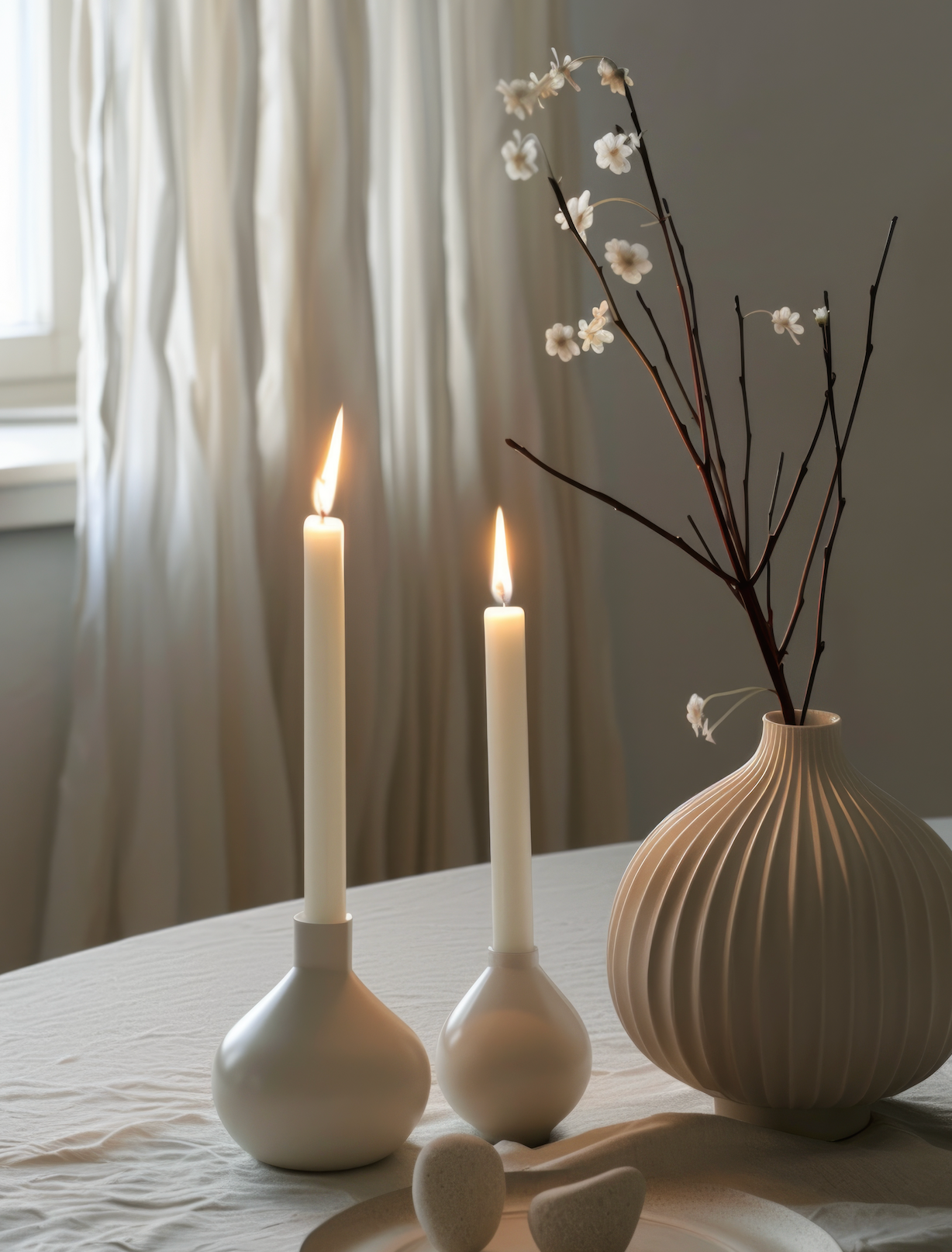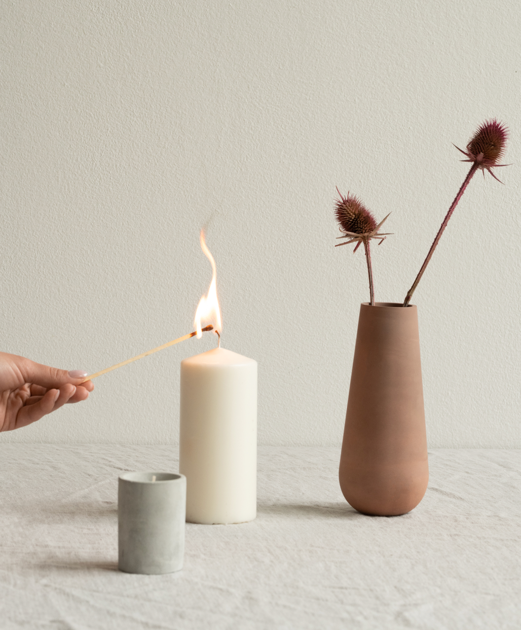 Our candles are created with clean lines, sculptural forms, and a minimalist palette—each one a quiet complement to your space, blending seamlessly into modern living.